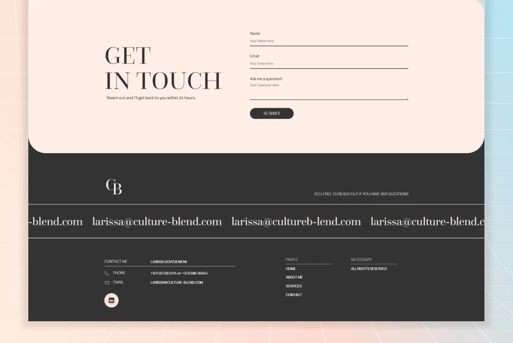 I designed the website in Figma and developed it in Webflow. I also created the logo and branding, focusing on a minimal and professional look.